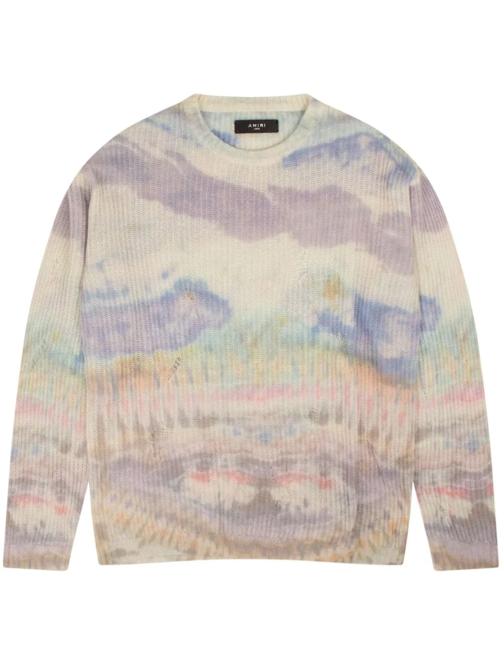 tie-dye cashmere jumper This AMIRI jumper blends the laid-back feel of California with street-style fashion. Its relaxed cashmere design makes it comfortable and cosy, while the striking tie-dye print adds contrast. Highlights - Multicolour - Cashmere - Tie-dye print - Crew neck - Long sleeves - Straight hem Imported Composition Cashmere 100% Washing instructions Read Manufacturer Guidelines