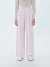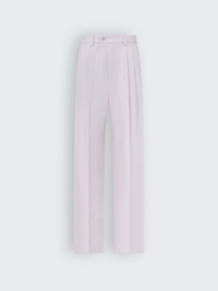 SS23 PLEATED TROUSERS IN PINK MADE IN ITALY 100% VISCOSE MODEL HEIGHT 6' 2", 28" WAIST, 34" INSEAM AND IS WEARING SIZE US: 42 VISCOE TWILL DRY CLEAN RECOMMENDED