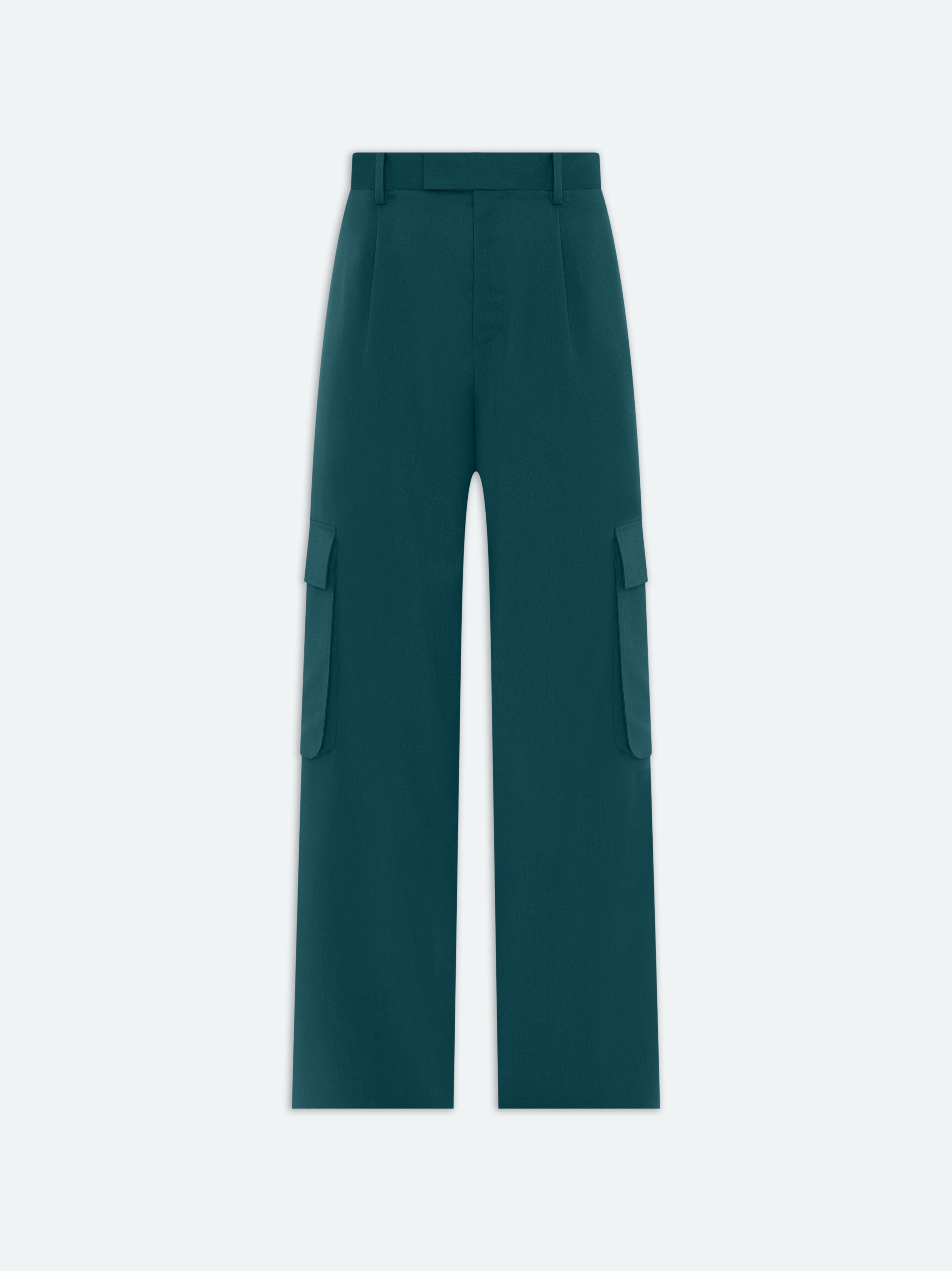 THESE PANTS HYBRIDIZE TAILORED SUITING WITH UTILITARIAN VISUAL CUES. CRAFTED WITH PLEATED CONSTRUCTION AND STREAMLINED CARGO POCKETS, THESE WIDE-LEG PANTS ARE FINISHED WITH CONCEALED HOOK-AND-ZIP CLOSURE AND CLASSIC BACK WELT POCKETS. THESE PANTS LEND SOPHISTICATED EASE AND A PLAY IN PROPORTION TO THE COLOR-COORDINATED MA BUSTIER. PRE-SPRING 2024 COLLECTION MADE IN ITALY 100% WOOL DRY CLEAN ONLY