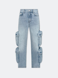 THROUGH CRAFTFUL MANIPULATION, DENIM TAKES ON NEW SHAPES THAT CONTINUE THE FABRIC'S CULTURAL LINEAGE. THE BAGGY CARGO JEANS ARE CRAFTED IN A BAGGY SILHOUETTE WITH FIVE-POCKET CONSTRUCTION AND OVERSIZED CARGO POCKETS. CORE COLLECTION MADE IN USA 100% COTTON THIS GARMENT HAS UNDERGONE A SPECIAL PROCESS WHICH RESULTS IN INTENTIONAL VARIATIONS OF SHADING AND COLOR, AND ADD TO THE PIECE'S UNIQUE CHARACTERISTICS. THIS MAY LEAD TO BLEEDING OR DYE TRANSFER. PLEASE USE CAUTION WHEN WASHING OR DRY-CLEANING THIS ITEM. STYLE:AWDNCG1015-406