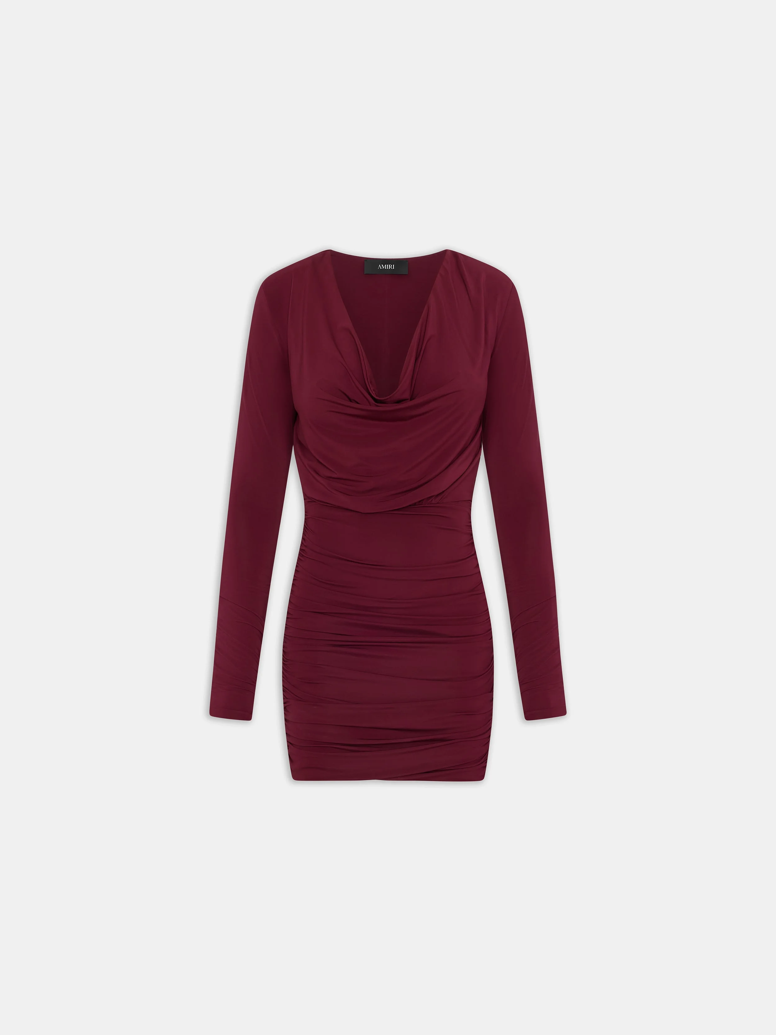FOR AUTUMN-WINTER 2025, EVENINGWEAR SILHOUETTES BECOME EMBLEMS OF POWER AND PRESENCE ENHANCED BY HOUSE SIGNATURE MOTIFS. THE COWL NECK MINI DRESS IS DESIGNED WITH A DRAPED NECKLINE AND RUCHED SKIRT AND FINISHED WITH INVISIBLE ZIP CLOSURE. AUTUMN-WINTER 2025 COLLECTION MADE IN ITALY 96% COTTON, 4% ELASTANE THIS GARMENT HAS UNDERGONE A SPECIAL PROCESS WHICH RESULTS IN INTENTIONAL VARIATIONS OF SHADING AND COLOR, AND ADD TO THE PIECE'S UNIQUE CHARACTERISTICS. THIS MAY LEAD TO BLEEDING OR DYE TRANSFER. PLEASE USE CAUTION WHEN WASHING OR DRY-CLEANING THIS ITEM STYLE:AWDRFO1018-546 SIZE & FIT MODEL MEASUREMENTS: HEIGHT: 5’10" CHEST: 32" WAIST: 23.5" HIP: 35.5" PRODUCT MEASUREMENTS (SIZE 38): WAIST: 14.8" LENGTH: 12" HIP: 18.3"