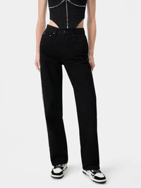 FOR AUTUMN-WINTER 2024, DENIM BECOMES A CANVAS FOR INTRICATE AND NOVEL FABRICATION. THE CRYSTAL STRIPE WIDE STRAIGHT IS EMBELLISHED WITH CRYSTALS ALONG EACH SIDE AND FINISHED WITH CLASSIC FIVE-POCKET CONSTRUCTION. AUTUMN-WINTER 2024 COLLECTION MADE IN USA 100% COTTON STYLE:AWDNGH1010-018 SIZE & FIT MODEL IS WEARING SIZE "26" MODEL MEASUREMENTS: HEIGHT: 5'10 CHEST: 32" WAIST: 23.5" HIP: 34.5" PRODUCT MEASUREMENTS: WAIST: 29" RISE: 11.75" HIP: 38" INSEAM: 31" WIDE STRAIGHT FIT