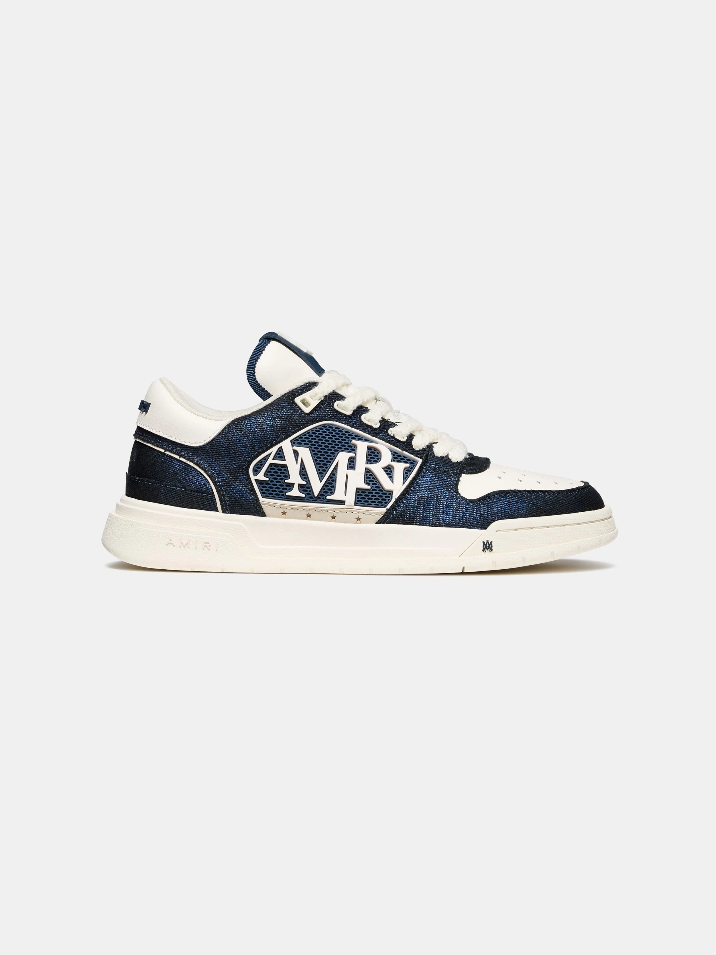 AUTUMN-WINTER 2025 PRESENTS THE HOUSE'S INTERPRETATION OF THE TIMELESS TENNIS SNEAKER IN NEW SEASONAL COLORS AND FABRICATIONS. THE DENIM CLASSIC LOW IS CRAFTED ON A RUBBER SOLE WITH A LEATHER AND DENIM UPPER, TEXTURED LACES, AND CENTRAL PANELS OF MOLDED RUBBER MESH FRAMING THE AMIRI STAGGERED LOGO. AUTUMN-WINTER 2025 COLLECTION MADE IN VIETNAM UPPER: COTTON. SOLE: RUBBER EACH PIECE IS METICULOUSLY CRAFTED AND INHERENTLY UNIQUE. SLIGHT VARIATIONS IN THE ARTWORK ARE A NATURAL RESULT OF THE PRINTING PROCESS AND CONTRIBUTE TO THE DISTINCTIVE CHARACTER OF THIS PRODUCT. STYLE:AWFOSR1139-393