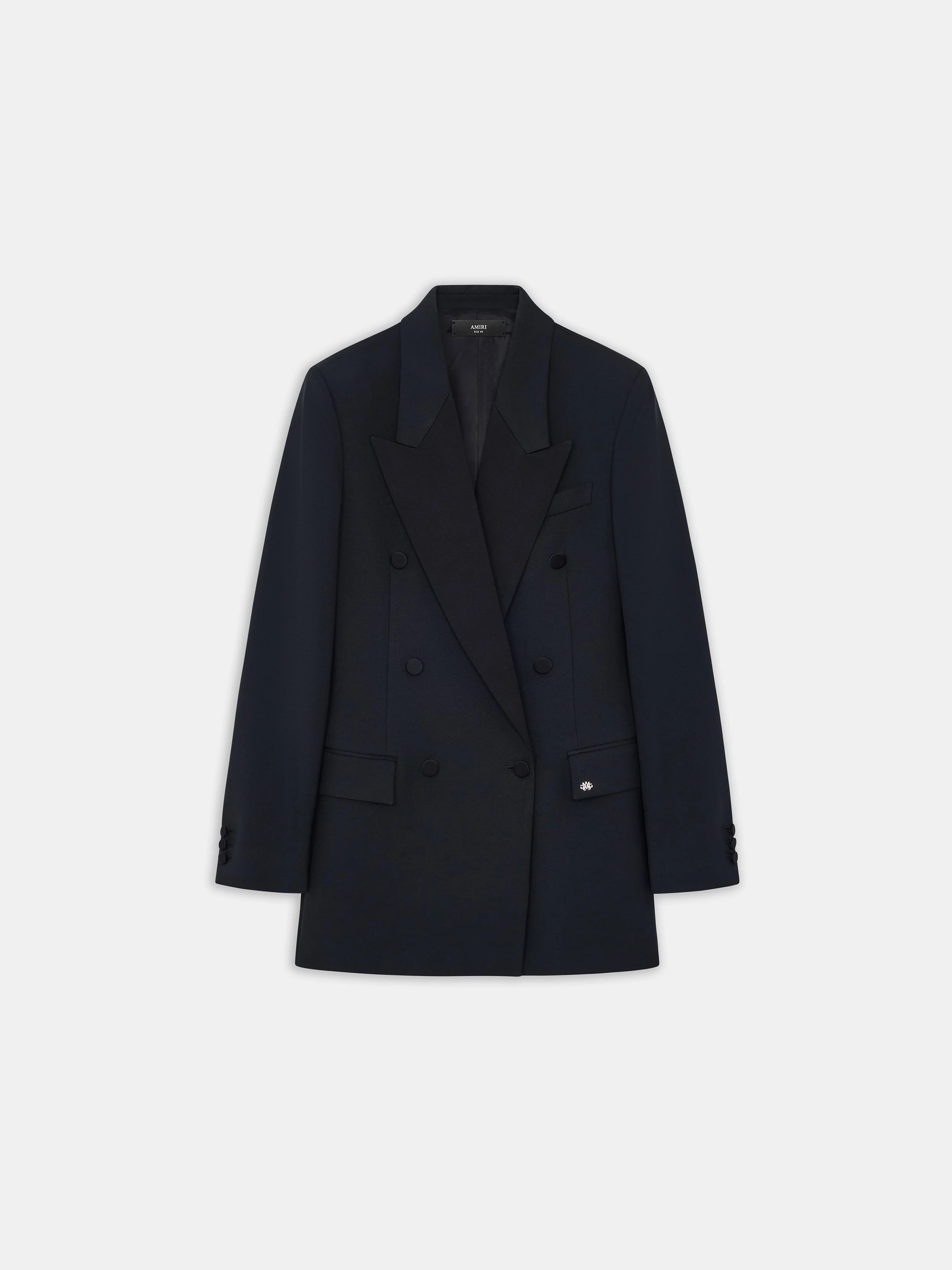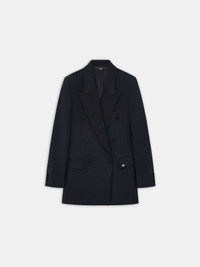 AUTUMN-WINTER 2025 INTRODUCES ELONGATED SUITING SILHOUETTES STEEPED IN THE VISUAL LANGUAGE OF AMERICA'S MID-CENTURY. THE DOUBLE-BREASTED BLAZER IS DESIGNED IN A MID-THIGH LENGTH AND FINISHED WITH A NOTCHED LAPEL AND BUTTON CLOSURE. AUTUMN-WINTER 2025 COLLECTION MADE IN ITALY 78% POLYESTER, 22% VIRGIN WOOL THIS GARMENT HAS UNDERGONE A SPECIAL PROCESS WHICH RESULTS IN INTENTIONAL VARIATIONS OF SHADING AND COLOR, AND ADD TO THE PIECE'S UNIQUE CHARACTERISTICS. THIS MAY LEAD TO BLEEDING OR DYE TRANSFER. PLEASE USE CAUTION WHEN WASHING OR DRY-CLEANING THIS ITEM STYLE:AWSUCJ1023-001 SIZE & FIT MODEL MEASUREMENTS: HEIGHT: 5’9.5" CHEST: 32" WAIST: 23" HIP: 34" PRODUCT MEASUREMENTS (SIZE 38): CHEST: 19.6" SHOULDER: 17.2" LENGTH: 32" SLEEVE LENGTH: 25.6"
