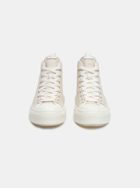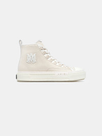 THE RETRO-INSPIRED COURT SILHOUETTE EMERGES IN NEW FABRICATIONS FOR PRE-SPRING 2025. THE MA COURT HI IS SET ON A MOLDED RUBBER OUTSOLE WITH A TWO-TONE UPPER AND MA ICON EMBROIDERY. PRE-SPRING 2025 COLLECTION MADE IN VIETNAM UPPER: 100% COTTON. SOLE: 100% RUBBER STYLE:AWFOSR1107-271