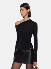 AUTUMN-WINTER 2025 WOMENSWEAR INTRODUCES ROMANTIC SILHOUETTES CRAFTED THROUGH A PURPOSEFUL PLAY IN FORM AND MATERIAL. THE MA OFF THE SHOULDER LONG SLEEVE TOP IS DESIGNED IN AN ASYMMETRICAL FORM WITH SIDE RUCHING AND ELONGATED SLEEVES. AUTUMN-WINTER 2025 COLLECTION MADE IN ITALY 96% COTTON, 4% ELASTANE THIS GARMENT HAS UNDERGONE A SPECIAL PROCESS WHICH RESULTS IN INTENTIONAL VARIATIONS OF SHADING AND COLOR, AND ADD TO THE PIECE'S UNIQUE CHARACTERISTICS. THIS MAY LEAD TO BLEEDING OR DYE TRANSFER. PLEASE USE CAUTION WHEN WASHING OR DRY-CLEANING THIS ITEM STYLE:AWTPLS1006-001 SIZE & FIT MODEL MEASUREMENTS: HEIGHT: 5’10" CHEST: 32" WAIST: 23.5" HIP: 35.5" PRODUCT MEASUREMENTS (SIZE 38): CHEST: 30.5" LENGTH: 24.4" SLEEVE LENGTH: 33.7"