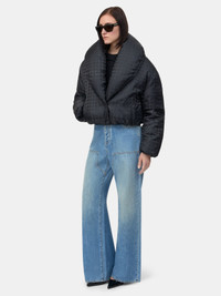 PRE-SPRING 2026 WOMENSWEAR INTRODUCES NEW RENDITIONS OF THE MA QUAD MONOGRAM, A TIMELESS HOUSE SIGNATURE. THE MA QUAD SHAWL DOWN JACKET IS CONSTRUCTED WITH SNAP BUTTON CLOSURE AND SIDE POCKETS. PRE-SPRING 2026 COLLECTION MADE IN ROMANIA 100% NYLON THIS GARMENT HAS UNDERGONE A SPECIAL PROCESS WHICH RESULTS IN INTENTIONAL VARIATIONS OF SHADING AND COLOR, AND ADD TO THE PIECE'S UNIQUE CHARACTERISTICS. THIS MAY LEAD TO BLEEDING OR DYE TRANSFER. PLEASE USE CAUTION WHEN WASHING OR DRY-CLEANING THIS ITEM STYLE:AWOUDO1001-001