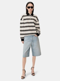 CONTINUING AN EXPLORATION OF SPORTSWEAR ICONS, PRE-FALL 2025 RECASTS THE TIME-HONORED RUGBY JERSEY IN A NEWLY REFINED INTERPRETATION. THE MA STRIPE OVERSIZED POLO IN COTTON IS DESIGNED IN A RELAXED FIT WITH SOLID CONTRAST FINISHES AND THREE-BUTTON CLOSURE. PRE-FALL 2025 COLLECTION MADE IN ITALY 100% COTTON THIS GARMENT HAS UNDERGONE A SPECIAL PROCESS WHICH RESULTS IN INTENTIONAL VARIATIONS OF SHADING AND COLOR, AND ADD TO THE PIECE'S UNIQUE CHARACTERISTICS. THIS MAY LEAD TO BLEEDING OR DYE TRANSFER. PLEASE USE CAUTION WHEN WASHING OR DRY-CLEANING THIS ITEM STYLE:AWJYPO1008-188 SIZE & FIT MODEL IS WEARING SIZE XS MODEL MEASUREMENTS: HEIGHT: 5'9.5” CHEST: 30" WAIST: 23" HIP: 34.5" PRODUCT MEASUREMENTS (SIZE XS): CHEST: 15.125" SHOULDER: 14.5" LENGTH: 17.625" SLEEVE LENGTH: 7.625"