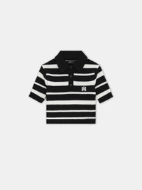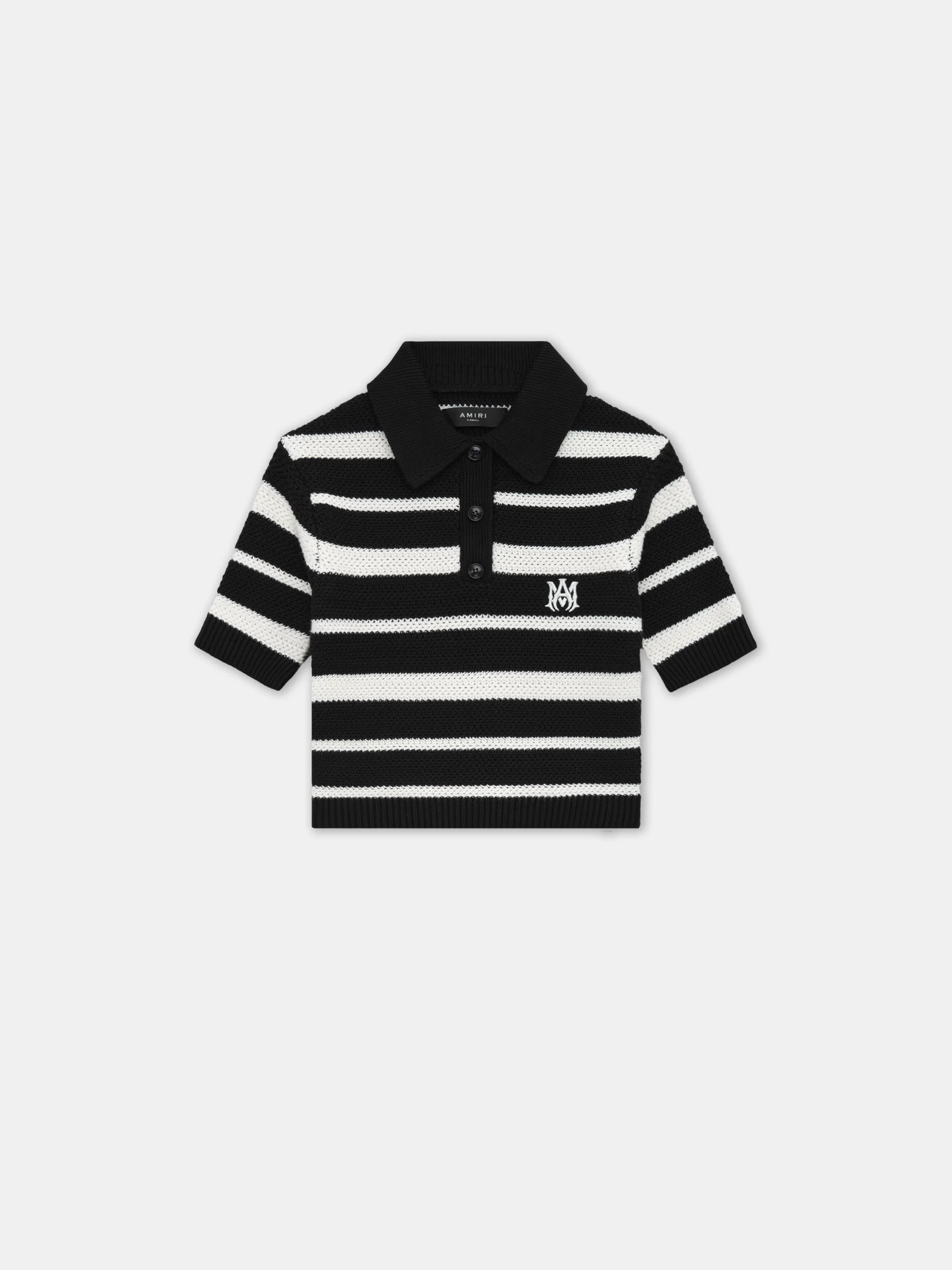 THE SEASON'S KNIT STRIPE APPEARS IN A CROPPED POLO SILHOUETTE FOR PRE-SPRING 2025. THE MA STRIPED POLO IN KNIT EGYPTIAN COTTON IS DESIGNED WITH THREE-BUTTON CLOSURE AND EMBROIDERED MA ICON AT CHEST. PRE-SPRING 2025 COLLECTION MADE IN ITALY 100% EGYPTIAN COTTON STYLE:AWKNPO1019-001 SIZE & FIT PRODUCT MEASUREMENTS (SIZE “S”): CHEST: 15" SHOULDER: 14.5" LENGTH: 17" SLEEVE LENGTH: 7.5"