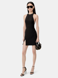 THE PRE-FALL 2025 WOMENSWEAR COLLECTION CONTINUES TO EXPLORE HOUSE SIGNATURE MOTIFS IN STREAMLINED SILHOUETTES. THE SLIT MINI DRESS FEATURES MA ICON HARDWARE AND IS FINISHED WITH INVISIBLE ZIP BACK CLOSURE. PRE-FALL 2025 COLLECTION MADE IN ITALY 92% POLYESTER, 8% ELASTANE THIS GARMENT HAS UNDERGONE A SPECIAL PROCESS WHICH RESULTS IN INTENTIONAL VARIATIONS OF SHADING AND COLOR, AND ADD TO THE PIECE'S UNIQUE CHARACTERISTICS. THIS MAY LEAD TO BLEEDING OR DYE TRANSFER. PLEASE USE CAUTION WHEN WASHING OR DRY-CLEANING THIS ITEM STYLE:AWDRCA1069-001 SIZE & FIT MODEL IS WEARING SIZE 38 MODEL MEASUREMENTS: HEIGHT: 5'9.5” CHEST: 30" WAIST: 23" HIP: 34.5" PRODUCT MEASUREMENTS (SIZE 38): WAIST: 24.75" HIP: 38" LENGTH: 31.25"