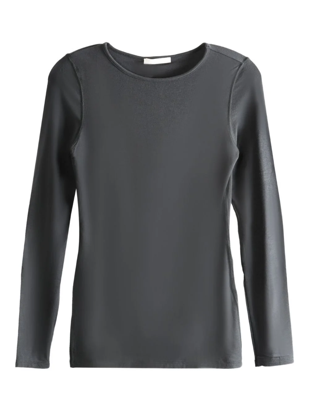 long-sleeve top Highlights - Charcoal - Round neck - Long sleeves Imported Composition TENCEL™ 86%, Wool 9%, Spandex/Elastane 5% Washing instructions Read Manufacturer Guidelines