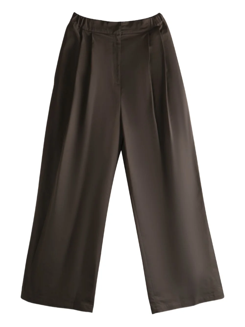 pleated trousers Highlights - Dark brown - Elasticated waistband - Pleats - Wide leg - Rear welt pocket Imported Composition Polyester 100% Washing instructions Read Manufacturer Guidelines