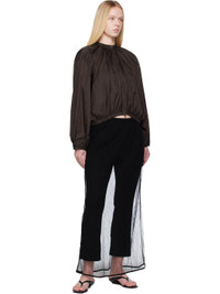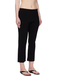Ribbed rayon-blend crepe capri leggings. · Elasticized waistband · Pointelle-knit stripe detailing at back waist Supplier color: Black 83% rayon, 17% polyester. Made in South Korea 251436F087014