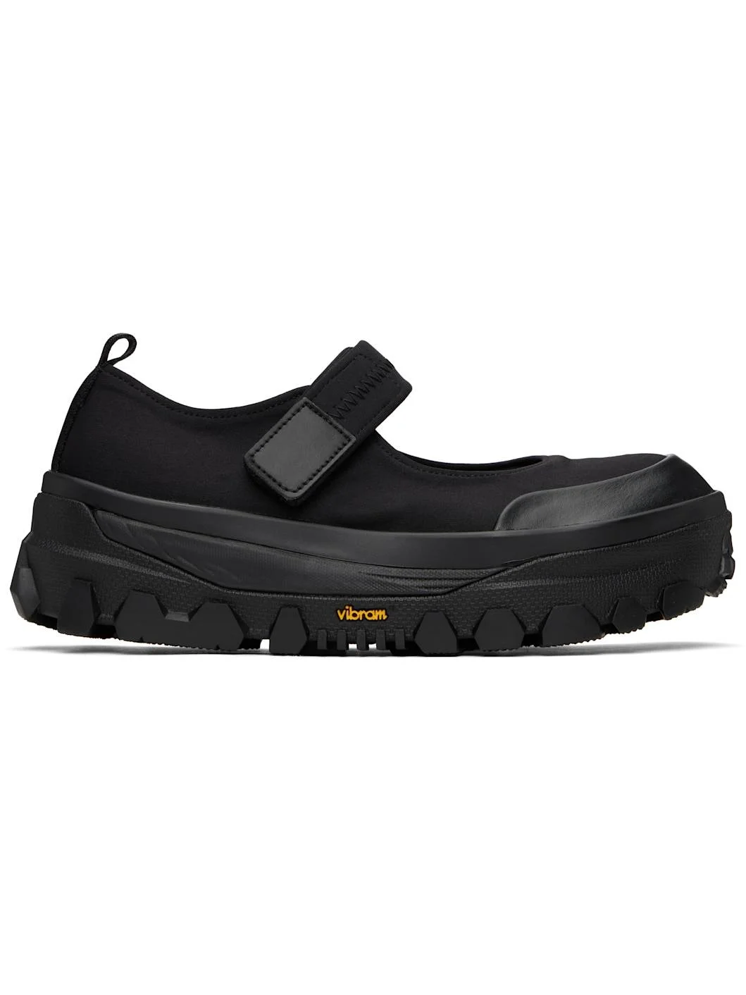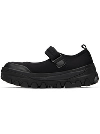 Jersey Mary Jane-style ballerina flats in black. · Grained leather cap toe · Velcro strap at vamp · Webbing pull-loop at heel tab · Logo printed at padded mesh footbed · Rubber platform midsole · Treaded Vibram® rubber sole · Platform: H2" Supplier color: Black