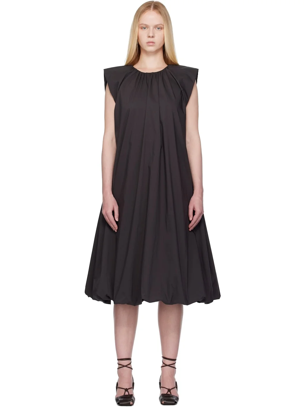 Cotton-blend poplin minidress. Gathering throughout. · Puff construction · Round neck · Zip closure with hook-eye at back collar · Fully lined Supplier color: Charcoal 68% cotton, 32% polyester. Made in South Korea 251436F054004