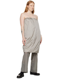 Nylon taffeta dress. Shirring throughout. · Elasticized straight neckline · Bungee-style drawstring at neckline and hem · Zip vent at side seam for alternate styling · Full plain-woven lining Supplier color: Grey 100% nylon. Made in South Korea 242436F052003