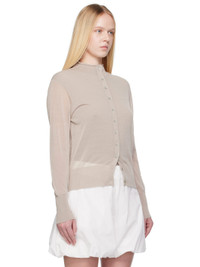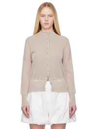 Sheer knit cotton-blend cardigan. · Fully fashioned knit · Rolled mock neck · Button closure · Rib-knit hem and cuffs Supplier color: Grey 85% cotton, 15% nylon. Made in South Korea 251436F095003