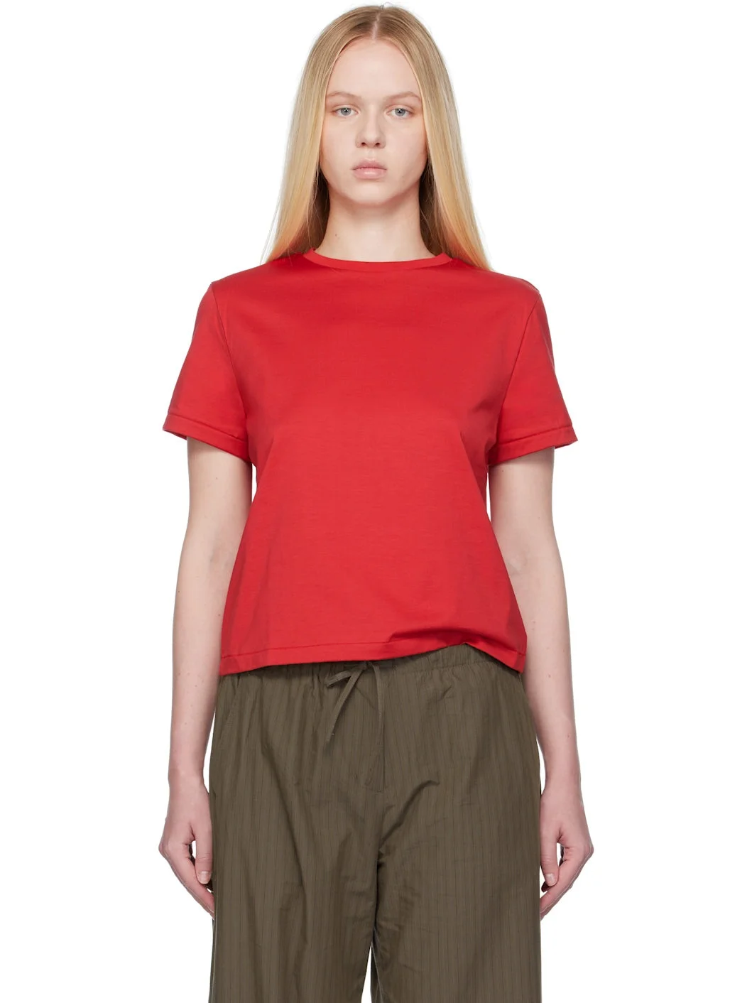Cotton jersey T-shirt. · Boxy-fit · Rib-knit crewneck Supplier color: Red 100% cotton. Made in Japan 251436F110006