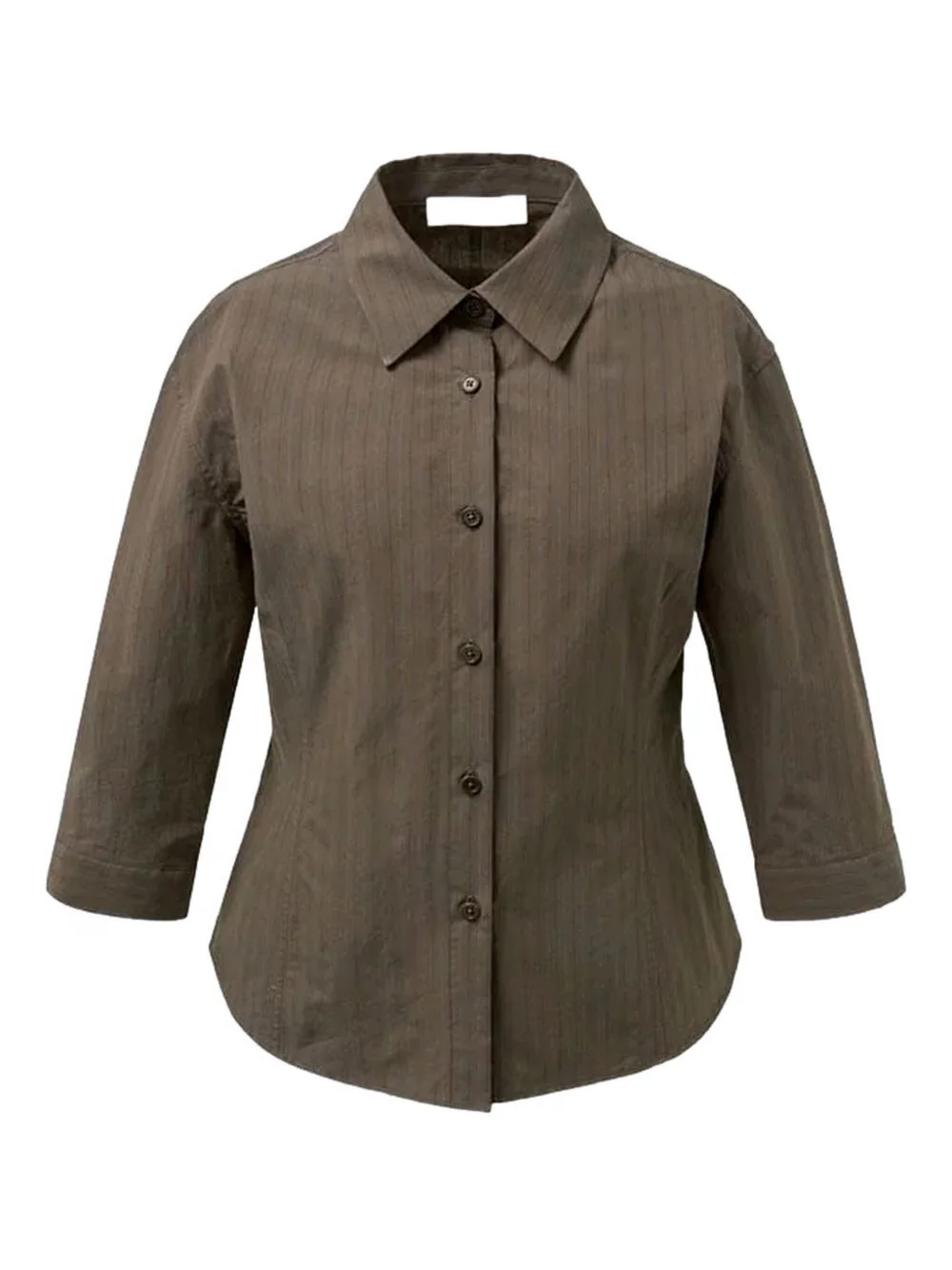 pinstripe-pattern shirt Highlights - Brown - Pinstripe pattern - Button fastening - Classic collar - Three-quarter sleeves Imported Composition Cotton 100% Washing instructions Read Manufacturer Guidelines
