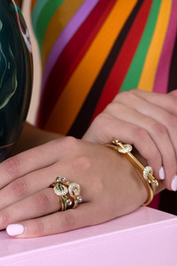 DETAILS AND INSIGHT Ananya emerald diamond chakra ring in yellow gold. 18K Yellow Gold Emerald, Diamonds Style HR-6108-22L