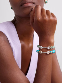 ANANYA's bracelet is part of its 'Chakra' collection, inspired by each energy center - the green color of the jade beads is associated with the mystical heart chakra, said to promote love, compassion and emotional healing. It features an 18-karat white gold bar inlaid with diamonds and tipped with quartz crystals. Size & Fit - Measurements can be found in the link below Details & Care - Jade, total weight: 60.00-carats; G-H diamonds, total weight: 2.01-carats; quartz, total weight: 1.19-carats - Slips on - This piece has been certified in accordance with the Hallmarking Act 1973