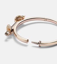 Ananya draws inspiration from mythology and symbolism to create fine jewelry that holds meaning. Expertly crafted from 18kt rose gold, the Chakra Icon bangle reimagines a celebrated brand-signature style. This piece features a smooth bar with quartz tips and two loops encrusted with dazzling pave diamonds for an opulent finish. Product Details - Material: 18kt rose gold - Made in Thailand - Item color: rose gold - Stone I: diamonds, round-cut, pave setting, VVS-VS clarity grade, G-J color grade, 1.1ctw - Stone II: 2 quartz, 0.92ct - Item number: P01069240 Size & Fit - Max. width 11mm-0.45" - Circumference size 16cm= 16,5cm-6.5"