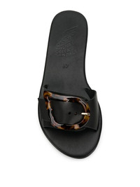 Aglaia sandals Black bos taurus and leather Aglaia sandals from Ancient Greek Sandals featuring an open toe, a branded insole and a flat sole. POSITIVELY CONSCIOUS: Ancient Greek Sandals scores 3 out 5 by independent ethical brand rating agency Good On You. It manufactures locally to reduce its carbon footprint, uses low impact non-toxic dyes and visits suppliers regularly in its supply chain. Imported Composition Calf Leather 100% SIZE & FIT Measurement Sole height 0.59 in(1.5 cm) HEEL 0.98 in(2.5 cm)