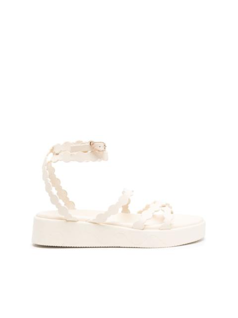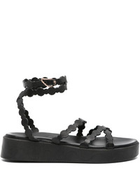 Aspis flatform leather sandals Highlights - Black - Calf leather - Circle motif - Open toe - Crossover strap detail - Buckle-fastening ankle strap - Branded insole - Flatform sole Imported Composition Leather 100% SIZE & FIT Measurement CIRCUMFERENCE 9.44 in(24 cm) HEEL 1.57 in(4 cm) HEIGHT 3.14 in(8 cm) Sole height 1.18 in(3 cm)