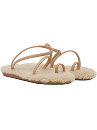 Handcrafted nappa leather sandals in beige. · Open toe · Fixed toe strap · Fixed ankle strap · Shearling-lined footbed · Logo-treaded rubber sole Supplier color: Natural/Natural sheepskin Upper: leather, sheepskin. Sole: rubber. Made in Greece 251674F124006