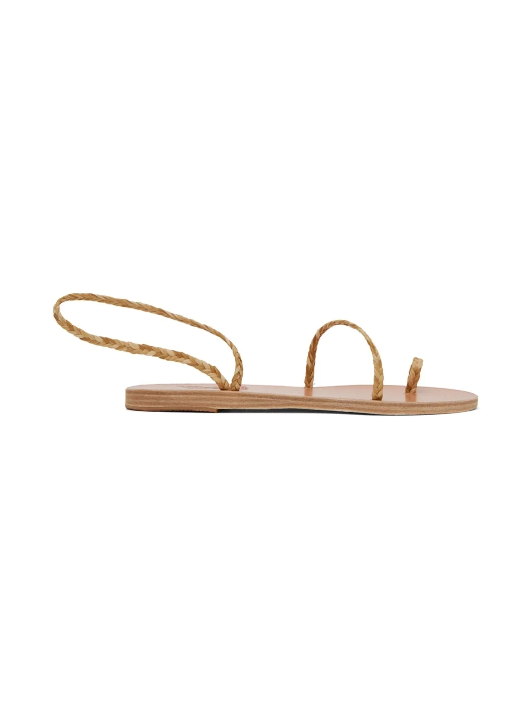 Handcrafted braided raffia sandals in beige. · Single toe strap · Fixed strap at vamp and ankle · Logo-embossed leather footbed · Leather sole with rubber injection Supplier color: Legno Upper: textile. Sole: leather, rubber. Made in Greece 231674F124096