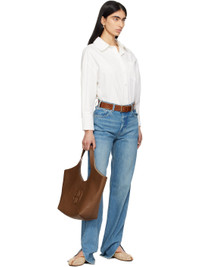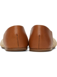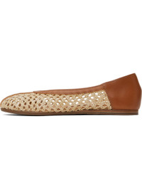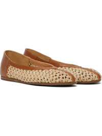 Handcrafted woven raffia and buffed leather ballerina flats in beige and tan. · Suede and buffed leather lining · Stacked leather heel · Treaded rubber sole Supplier color: Natural Upper: raffia, leather. Sole: rubber. Made in Greece 251674F118011