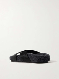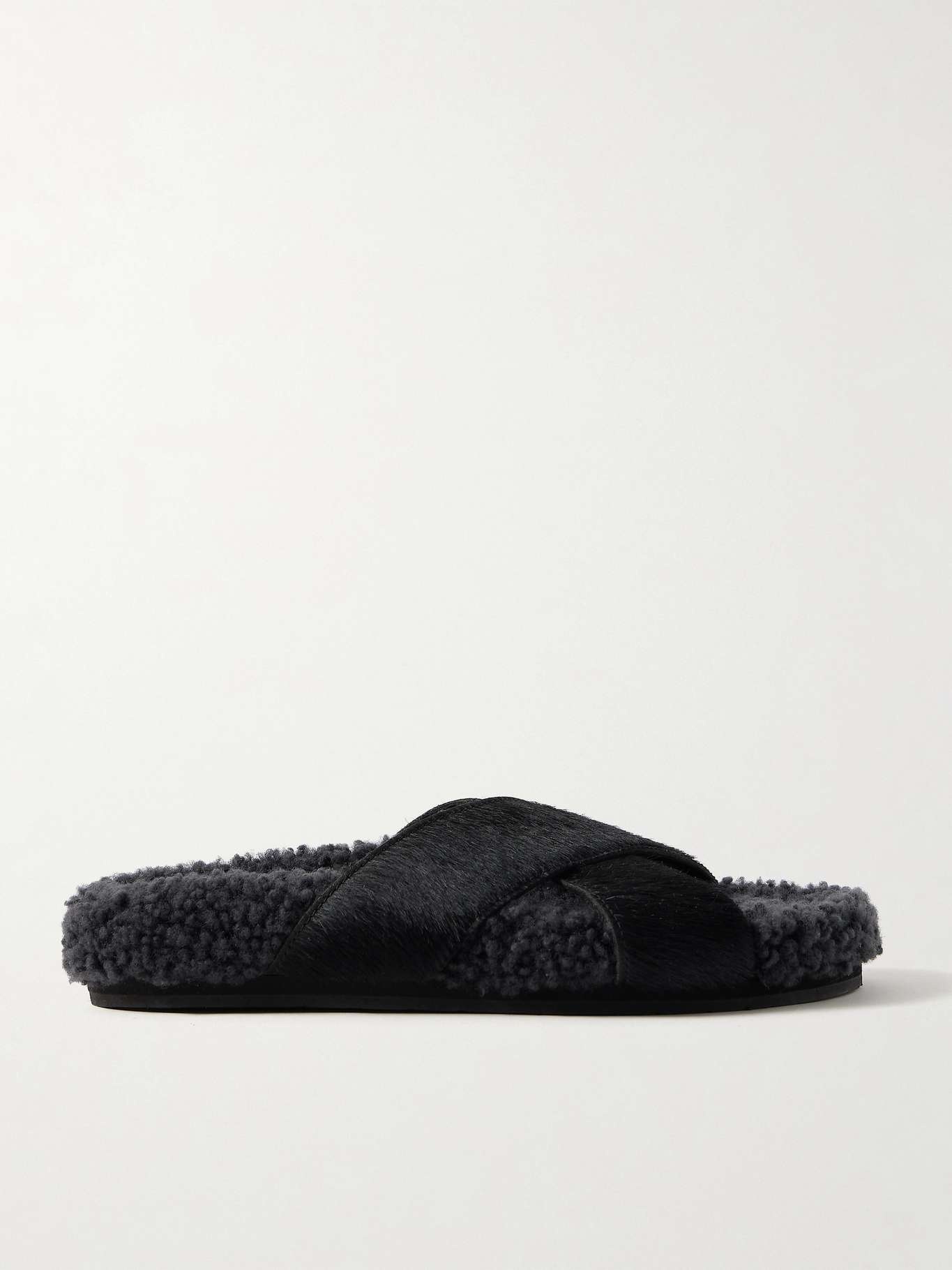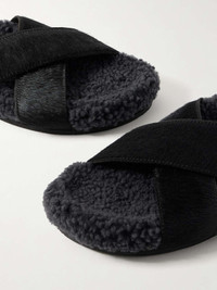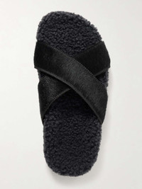 EDITORS'NOTES Handmade by local craftsmen using traditional, centuries-old techniques, Ancient Greek Sandals' shoes are built to stand the test of time. These 'Anilio' slides have plush shearling soles and wide calf hair straps that secure your feet. Wear them with casual outfits. SIZE & FIT - Fits true to size, take your normal size - Italian sizing DETAILS & CARE - Slight heel - Black calf hair and shearling (Sheep) - Slip on