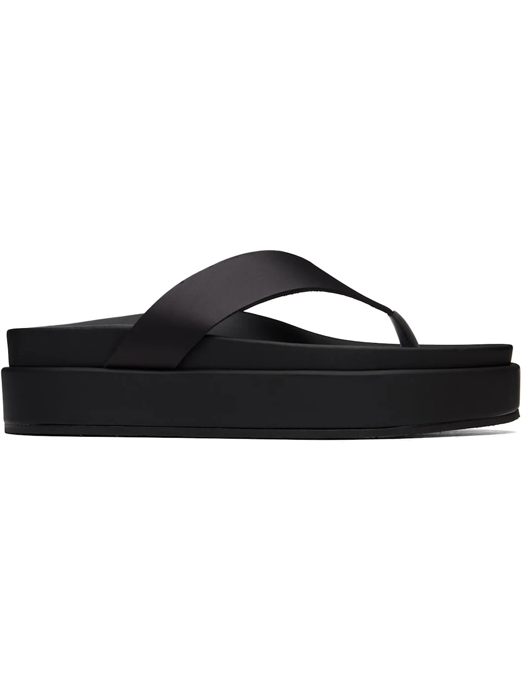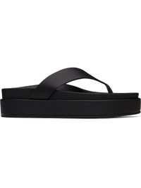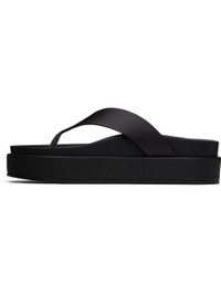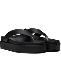 Handcrafted chemical-free buffed vachetta leather flip-flops in black. · Open toe · Thong-style strap · Logo embossed at molded footbed · Treaded rubber platform sole · Platform: H2" Supplier color: Black Upper: leather. Sole: rubber. Made in Greece 251674F124075