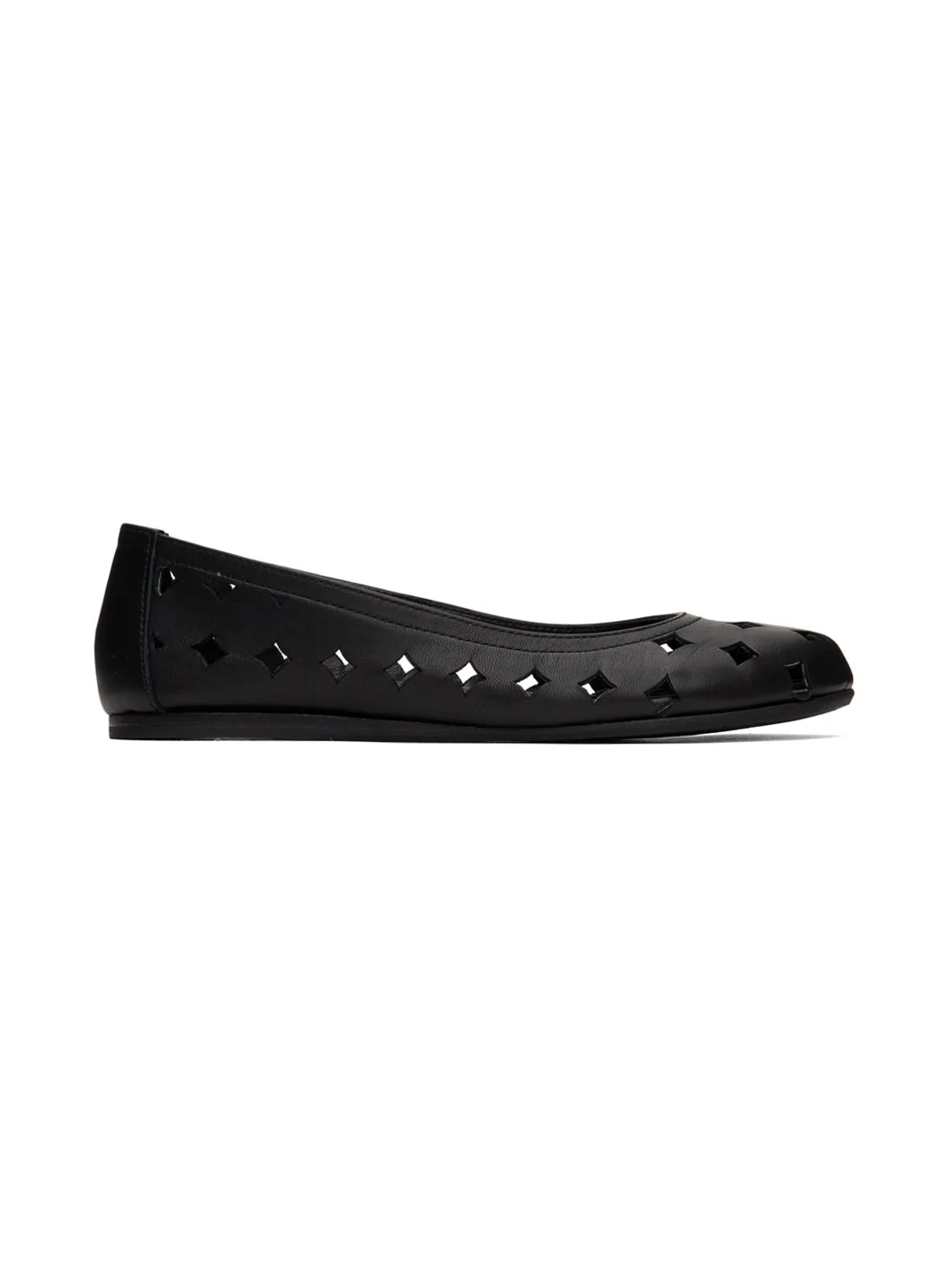 Grained leather ballerina flats in black. · Graphic cutouts throughout · Logo stamp at padded leather footbed · Treaded rubber sole Supplier color: Black Upper: leather. Sole: rubber. Made in Greece 241674F118001