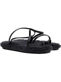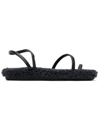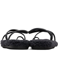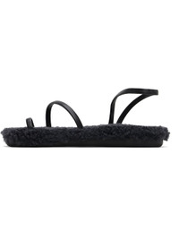 Handcrafted nappa leather sandals in black. · Open toe · Fixed toe strap · Fixed ankle strap · Shearling lined footbed · Logo treaded rubber sole Supplier color: Black/Black shearling Upper: leather, sheepskin. Sole: rubber. Made in Greece 251674F124007