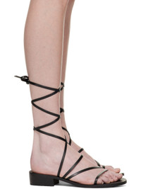 Nappa leather heeled sandals in black. · Open toe · Straps at vamp · Self-tie wraparound ankle straps · Wooden block heel with crepe rubber injection · Leather sole · Heel: H1.25 in Supplier color: Black Leather. Made in Greece 231674F125001