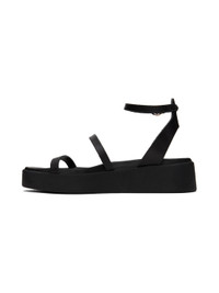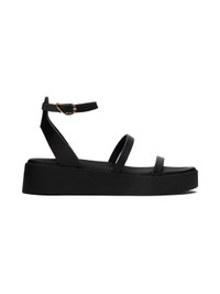 Handcrafted Vachetta leather flat sandals in black. · Open toe · Gold-tone logo hardware at pin-buckle ankle strap · Logo embossed at molded footbed · Foam rubber platform midsole · Treaded rubber sole · Platform: H1.5" Supplier color: Black Upper: leather. Sole: rubber. Made in Greece 241674F124023