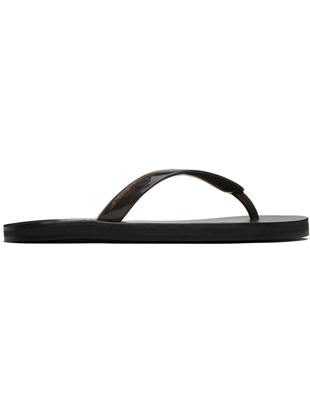 Handcrafted vinyl flip-flops. · Logo-embossed thong-style strap · Vegetable-tanned buffed leather footbed · Hand-stitched stacked leather midsole · Logo-embossed rubber sole Supplier color: Black Upper: polyvinyl chloride. Sole: leather, rubber. Made in Greece 252674F124009