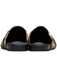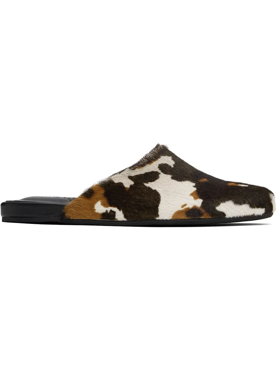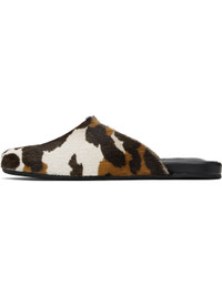 Handcrafted vegetable-tanned calf-hair mules in brown and off-white. · Graphic pattern printed throughout · Logo-embossed padded leather footbed · Grained calfskin lining · Logo-treaded rubber sole Supplier color: Cow Upper: calfskin. Sole: rubber. Made in Greece 251674F121009