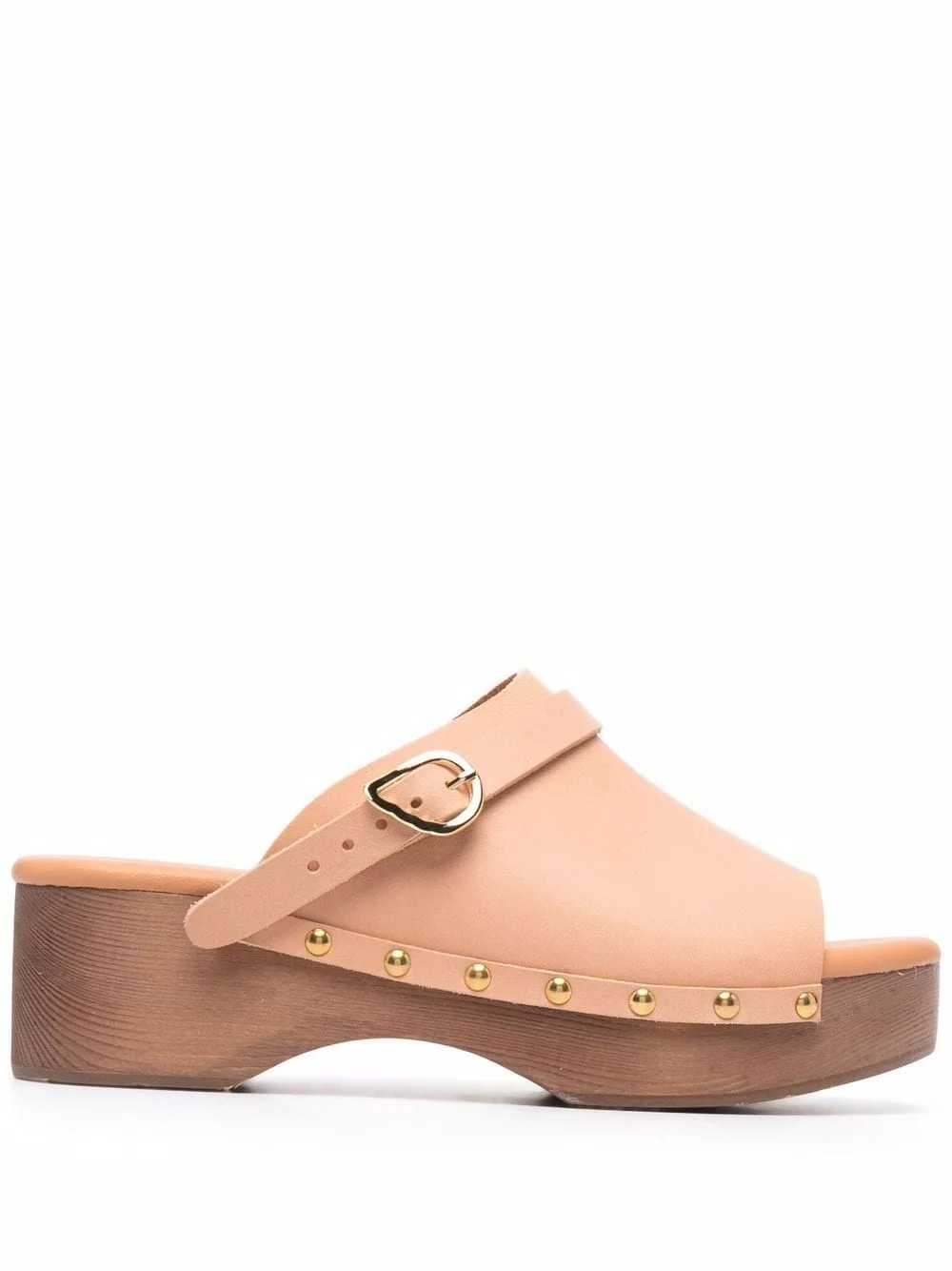 buckle-detail clog sandals Highlights - Pink - Wood/leather - Stud embellishment - Side buckle fastening - Open toe - Branded insole - Stacked wooden sole Imported Composition Leather 100% SIZE & FIT Measurement HEEL 2.16 in(5.5 cm) Sole height 1.37 in(3.5 cm)