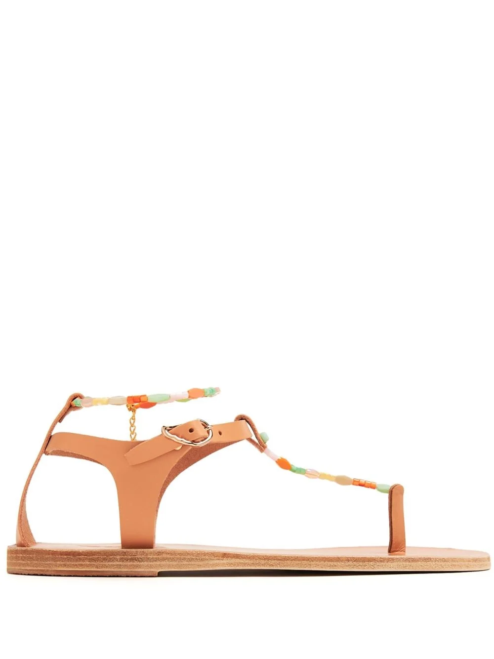 Chrysso sandals Highlights - Tan brown - Calf leather - Buckle-fastening ankle strap - Lobster claw fastening - Bead embellishment - Crystal embellishment - T-bar strap - Round open toe - Branded leather insole - Flat rubber sole Imported Composition Sole: Calf Leather 100% Lining: Calf Leather 100% Outer: Calf Leather 100%, Crystal 100%