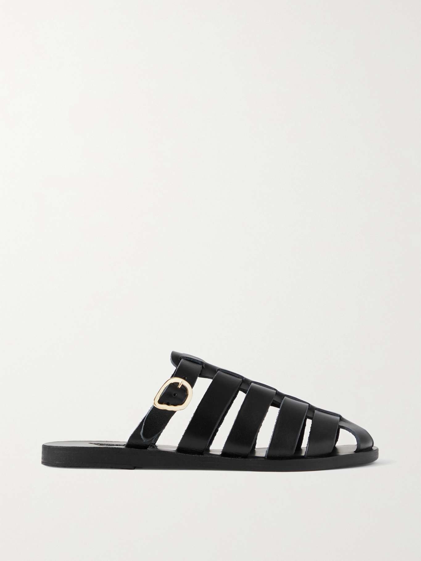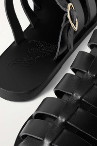 EDITORS'NOTES Ancient Greek Sandals' footwear is handmade by local Grecian artisans using centuries-old techniques, so you can expect them to last for years to come. These 'Cosmia' sandals are made from strips of supple leather and are punctuated with a gleaming gold buckle at the side. SIZE & FIT - Fits small to size, take a full size larger than normal - Only available in full sizes, go up to the nearest whole size if you take a half size - Italian sizing DETAILS & CARE - Heel measures approximately 10mm/ 0.5 inches - Black leather (Cow) - Slips on Small to size. See Size & Fit notes.