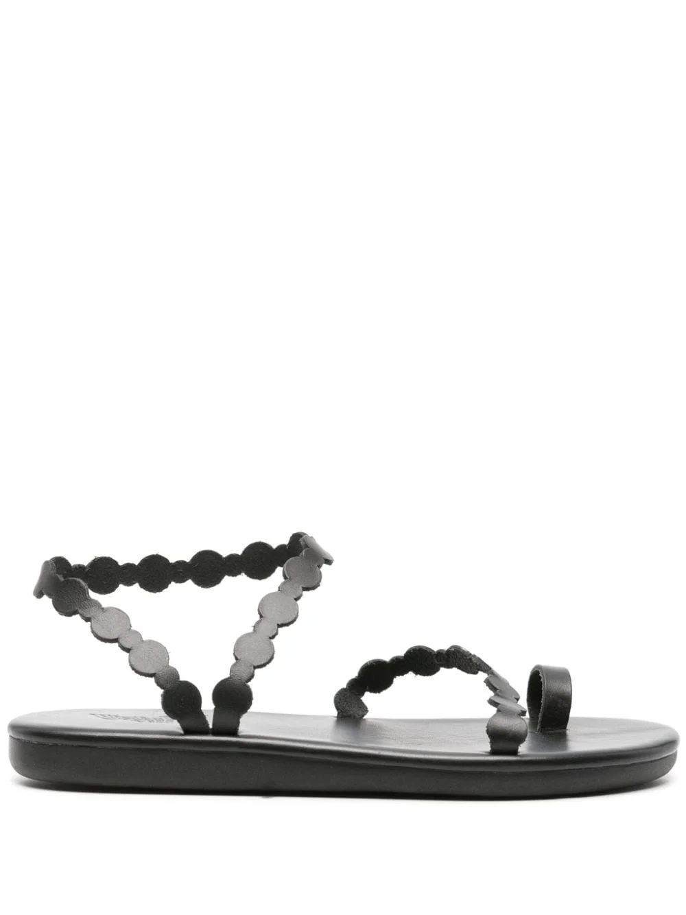 Cronos flat leather sandals Highlights - Black - Calf leather - Circle motif - Asymmetric design - Open toe - Branded insole - Flat sole Imported Composition Leather 100% SIZE & FIT Measurement HEEL 0.78 in(2 cm) HEIGHT 2.36 in(6 cm) Sole height 0.39 in(1 cm)