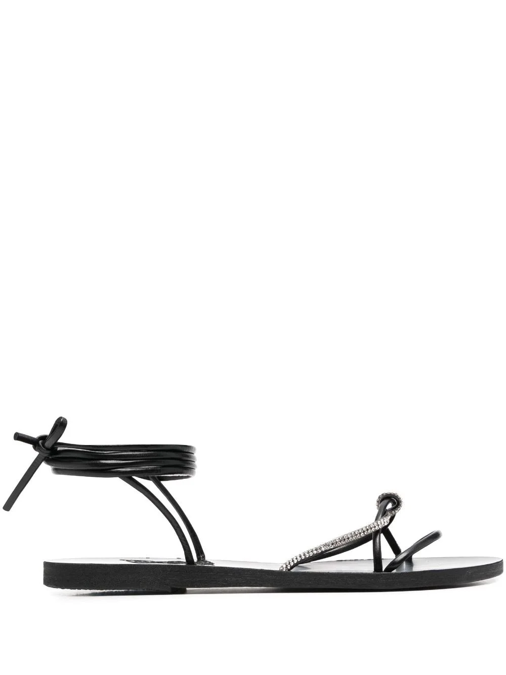 crystal-embellished Treli sandals Highlights - Black - Calf leather - Crystal embellishment - Tie-fastening ankle strap - Almond toe - Branded insole - Multi-way strap design - Flat leather sole Imported Composition Outer: Calf Leather 100% Lining: Calf Leather 100% Sole: Calf Leather 100%, glass 100% SIZE & FIT Measurement HEEL 0.59 in(1.5 cm)