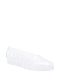 white flat rubber sole branded footbed This piece comes complete with a protective dust bag. Size & Fit Model Measurements: Bust: 0cm Height: 0cm Hips: 0cm Waist: 0cm HEEL: 1.8cm Fabric and Care Designer Style ID: ELLIBALLERINA Designer Colour: CLEAR Composition: Sole: Rubber 100%; Outer: Rubber 100%; Lining: Rubber 100% Washing instructions: Hand Wash
