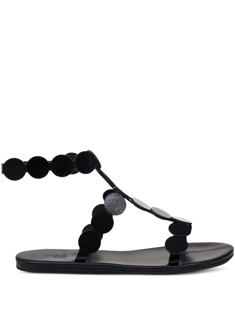Triton circle-embellished flat sandals Highlights - Black - Leather - Ankle buckle fastening - Flat sole - Multiple straps - Circle embellishments Imported Composition Outer: Polyurethane 100% Lining: Polyurethane 100% Sole: Rubber 100%