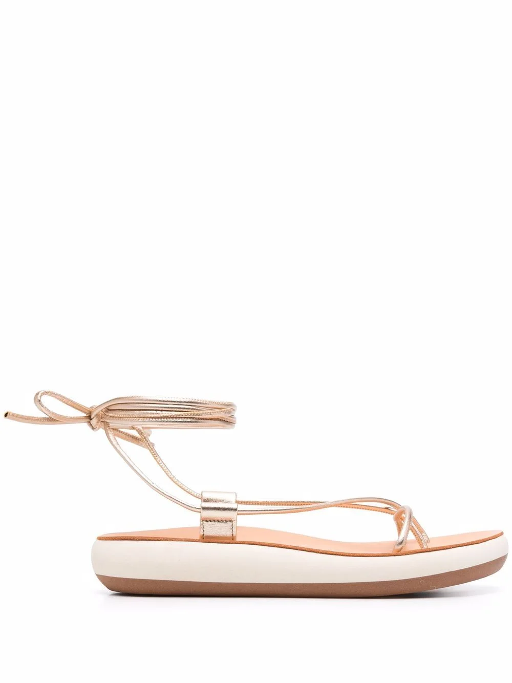 Diakopes ankle-tie sandals Highlights - Gold/beige - Leather - Open toe - Tie-fastening ankle strap - Flatform sole Imported Composition Outer: Rubber 100% Sole: Rubber 100% Lining: Calf Leather 100% SIZE & FIT Measurement HEEL 1.18 in(3 cm) Sole height 0.78 in(2 cm)