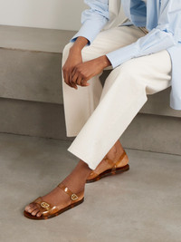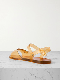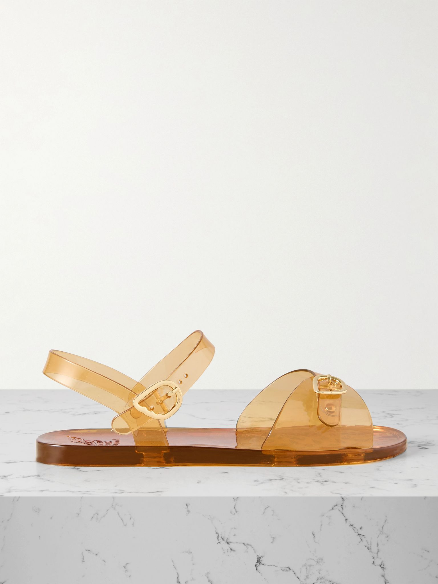 Ancient Greek Sandals' 'Irini' sandals tap into the '90s jelly shoe renaissance. Made from transparent recycled-PVC, these slingbacks feature the recognizable winged buckle on double straps. Size & Fit - Fits true to size, take your normal size - Only available in full sizes, go up to the nearest whole size if you take a half size - Italian sizing Details & Care - Slight heel - Tan recycled-PVC - Buckle-fastening slingback strap