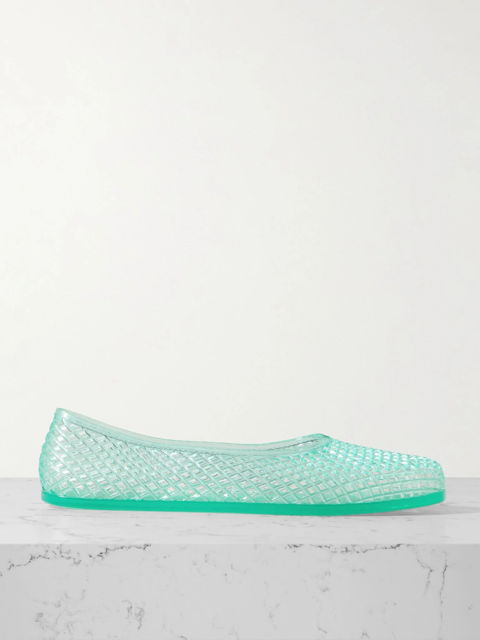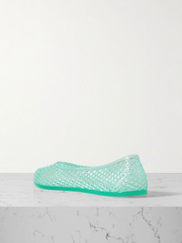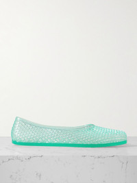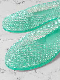 Ballet styles inspire Ancient Greek Sandals' 'Iro' flats, which are made for the beach with their rubbery, washable PVC. They have a lattice construction that makes them especially airy and flexible, too. Size & Fit - Fits true to size, take your normal size - Only available in full sizes, go up to the nearest whole size if you take a half size - Italian sizing Details & Care - Slight heel - Turquoise PVC - Slip on - Designer color: Aqua