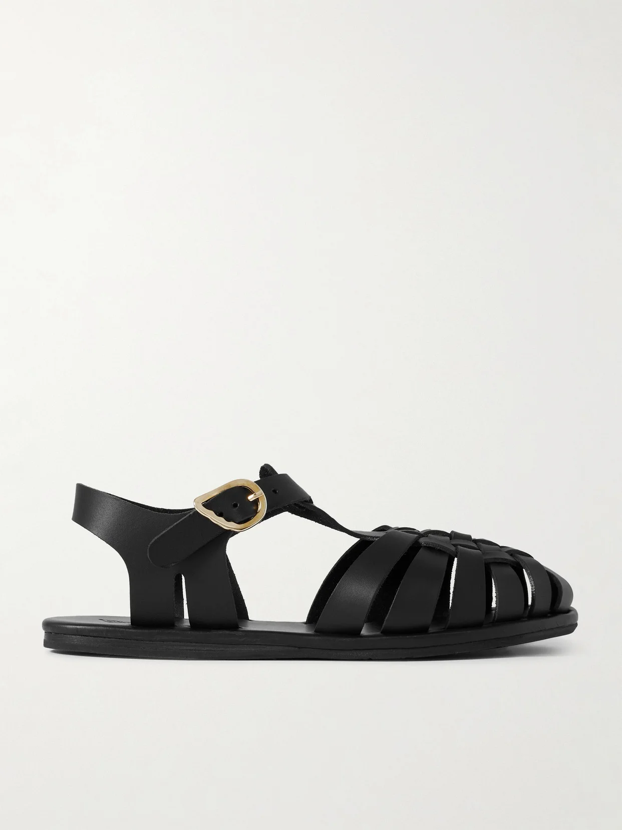 Ancient Greek Sandals fuses contemporary design with traditional craftsmanship. These 'Karina' sandals are handmade from strips of leather woven in a classic fisherman profile. The wing-shaped buckle is a nod to the designer's love of mythology.